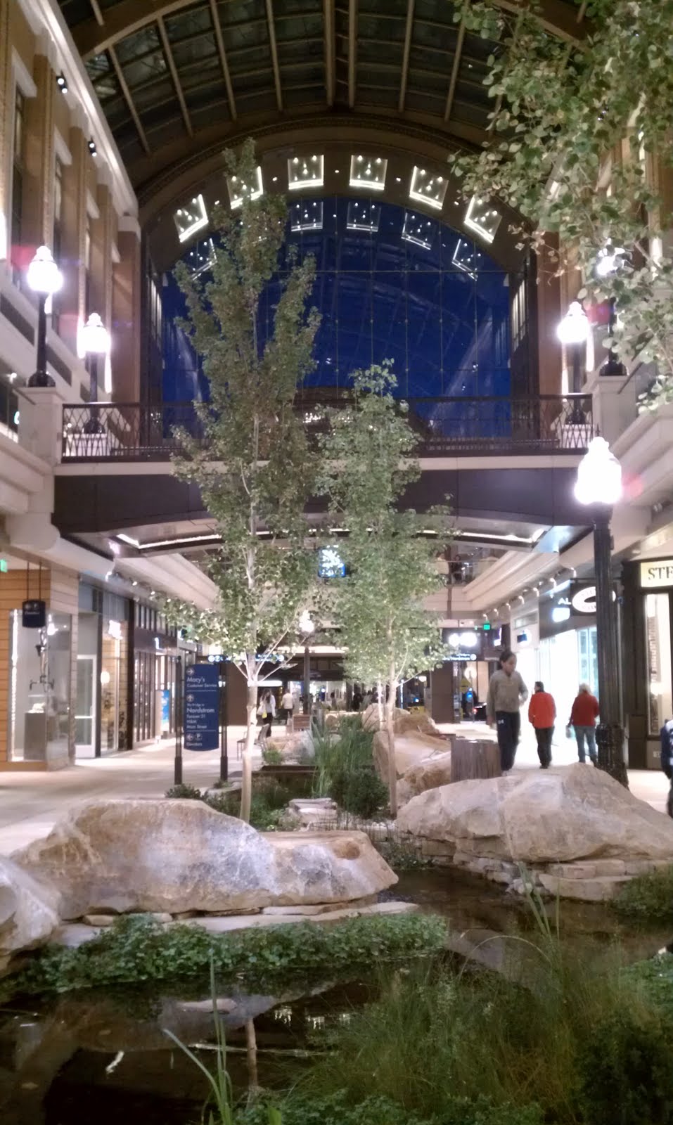 After I was sufficiently froze from walking around, we went back to the car and got our not-church clothes (which were much warmer.) We then toured the new City Creek Center in downtown Salt Lake. It is so beautiful! There are waterfalls, fountains, trees, and even fish! We had a great time going in all the stores (I especially loved looking at all the baby girl clothes in Baby Gap and Gymboree!)